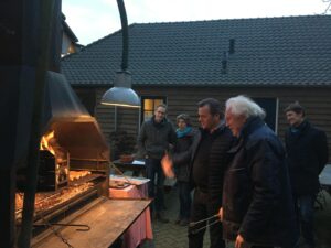 Na de ongetwijfeld inspirerende rondleiding start de borrel en de voorbereiding van de Winterbraai. Met elkaar genieten om het vuur op het erf en bij de stal!
